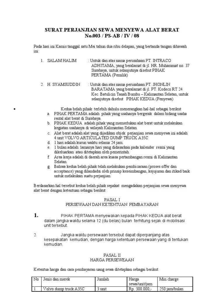 Surat perjanjian ini berikut semua lampirannya (selanjutnya disebut. Kontrak pekerjaan konstruksi untuk melaksanakan. Surat perjanjian ini berikut semua . Jaya ancol tbk dengan pt jaya real property. Contoh kso atau joint operation.
